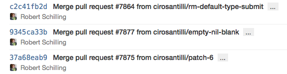 The way to prevent creating many merge commits is to not frequently merge master into the feature branch. We'll discuss the three reasons to merge in master: leveraging code, merge conflicts, and long running branches. If you need to leverage some code that was introduced in master after you created the feature branch you can sometimes solve this by just cherry-picking a commit. If your feature branch has a merge conflict, creating a merge commit is a normal way of solving this. You can prevent some merge conflicts by using gitattributes for files that can be in a random order. For example in GitLab our changelog file is specified in .gitattributes as CHANGELOG merge=union so that there are fewer merge conflicts in it. The last reason for creating merge commits is having long lived branches that you want to keep up to date with the latest state of the project. Martin Fowler, in his article about feature branches talks about this Continuous Integration (CI). At GitLab we are guilty of confusing CI with branch testing. Quoting Martin Fowler: "I've heard people say they are doing CI because they are running builds, perhaps using a CI server, on every branch with every commit. That's continuous building, and a Good Thing, but there's no integration, so it's not CI.". The solution to prevent many merge commits is to keep your feature branches short-lived, the vast majority should take less than one day of work. If your feature branches commonly take more than a day of work, look into ways to create smaller units of work and/or use feature toggles. As for the long running branches that take more than one day there are two strategies. In a CI strategy you can merge in master at the start of the day to prevent painful merges at a later time. In a synchronization point strategy you only merge in from well defined points in time, for example a tagged release. This strategy is advocated by Linus Torvalds because the state of the code at these points is better known.